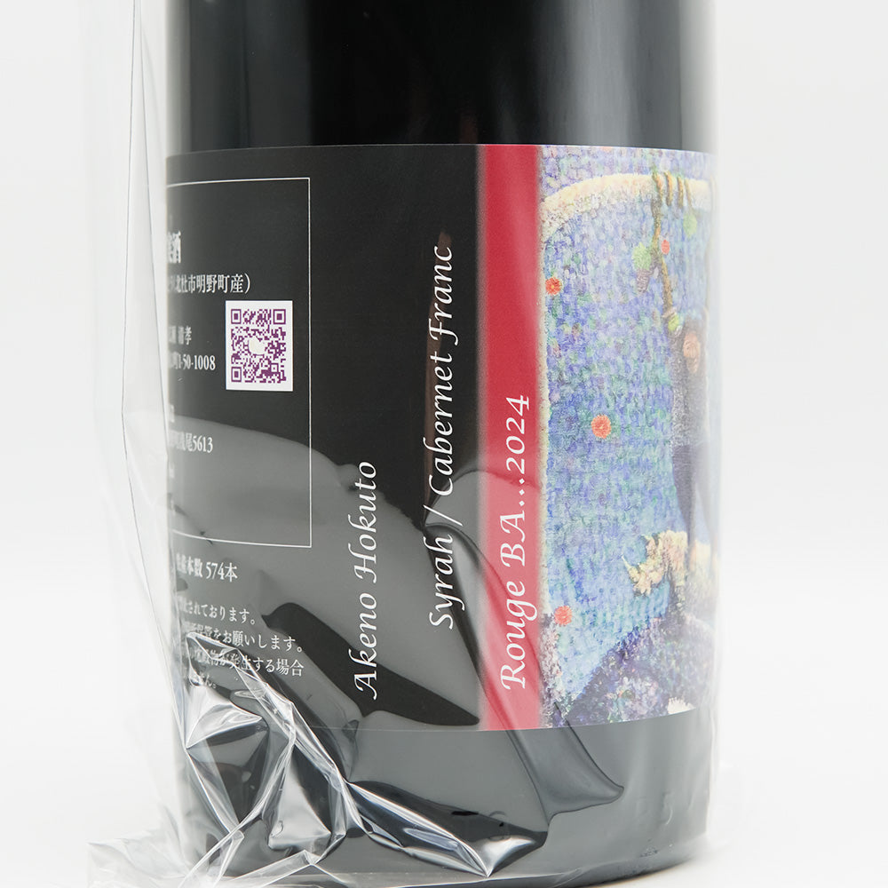 山梨県北杜市明野町の畑で育てられたぶどうから造られるナチュラルワイン「Rouge BA 2024」。