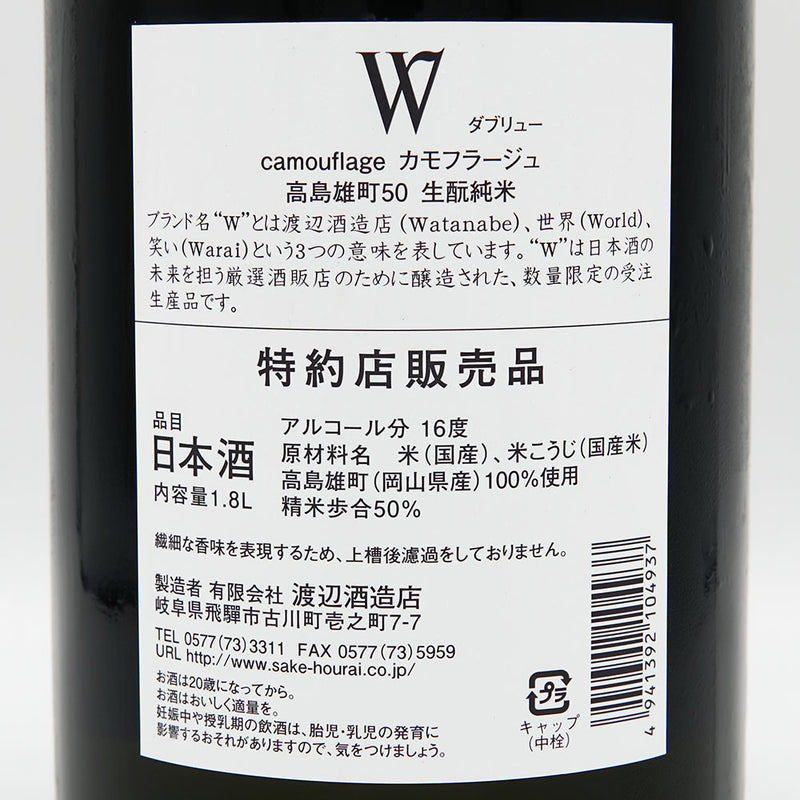 【W(ダブリュー) 高島雄町 生酛純米 無濾過原酒】