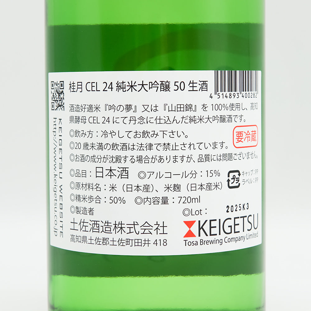 Keigetsu CEL24 Junmai Daiginjo 50 Freshly Squeezed Namazake 720ml/1800ml [Cool delivery recommended]