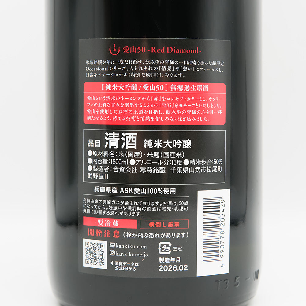 Kankiku Aizan 50 -Red Diamond- Junmai Daiginjo Unfiltered Unprocessed Sake 720ml/1800ml [Cool delivery recommended]