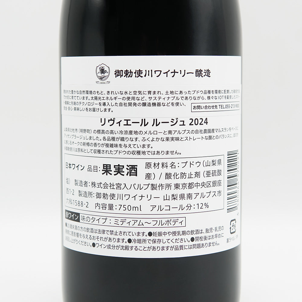 御勅使川(みだいがわ)ワイナリー リヴィエール ルージュ 2024 750ml